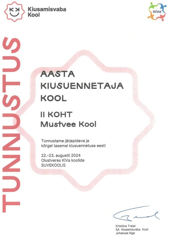 Mustvee koolis rakendatakse alates 2018. aastast KiVa programmi!