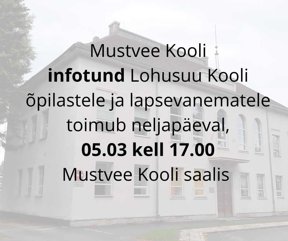 Päevakava muutus Loomise kuupäev 27.02.2026 Autor Andreas Altpere Eesti Vabariigi aastapäeva kontsert Loomise kuupäev 16.02.2026 Autor Mihkel Kaljumäe 9. klasside karjäärikonverents: Sinu otsus, sinu tulevik Loomise kuupäev 09.02.2026 Autor Andreas Altpere Koolipsühholoogide nõuandeliin Loomise kuupäev 26.01.2026 Autor Andreas Altpere Vaata rohkem