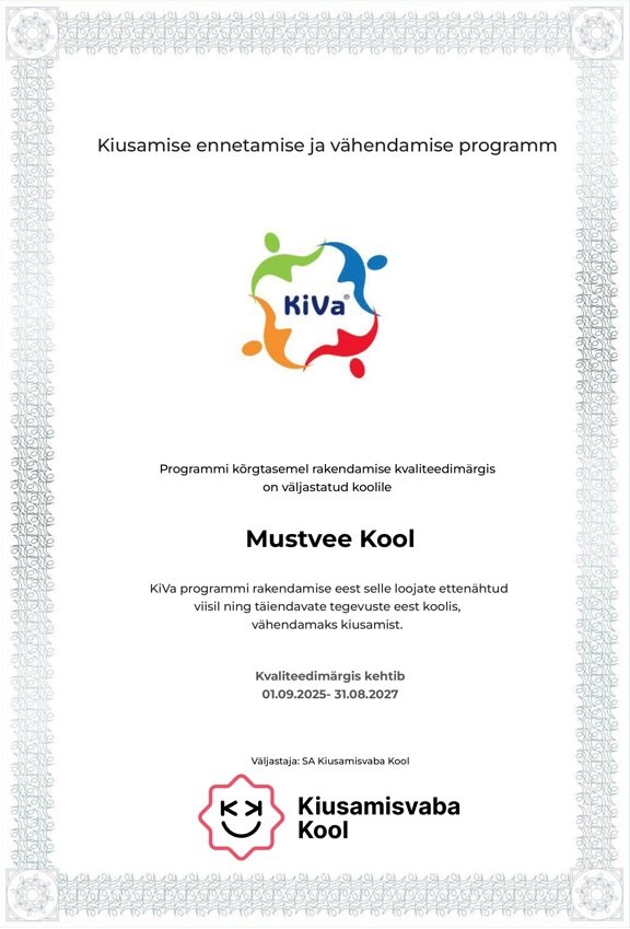 KiVa rakendamine meie koolis tähendab, et meie koolis ei ole kiusamine lubatud ega aktsepteeritud. Tegutseme kõik koos selle nimel, et kiusamist ära hoida ja tekkivaid juhtumeid tõhusalt lahendada.